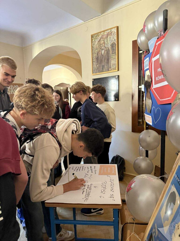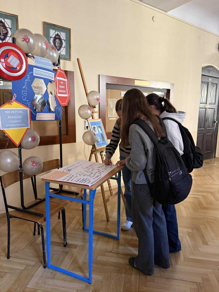 W czwartek, 2 października, na dużej przerwie z licealnego głośnika Tonsil rozbrzmiały piosenki będące protestem przeciwko hejtowi, agresji i nietolerancji. Utwory takich twórców jak: The Cranberries („Zombie”), Dawid Podsiadło („Matylda”) czy Kortez („Hej Wy”) miały na celu zwrócić uwagę społeczności szkolnej na obchodzony tego dnia Międzynarodowy Dzień Bez Przemocy. Młodzież, z Samorządem Uczniowskim na czele, podpisywała się pod hasłem „Nie hejtuję, reaguję” zachęcając się wzajemnie do odważnego działania w zgodzie z takim wartościami, jak szacunek, empatia, życzliwość.