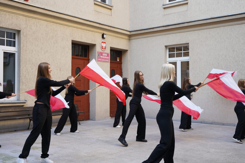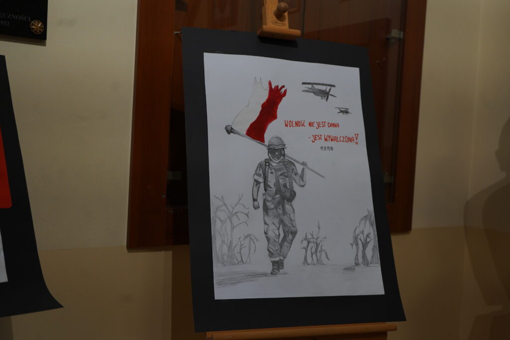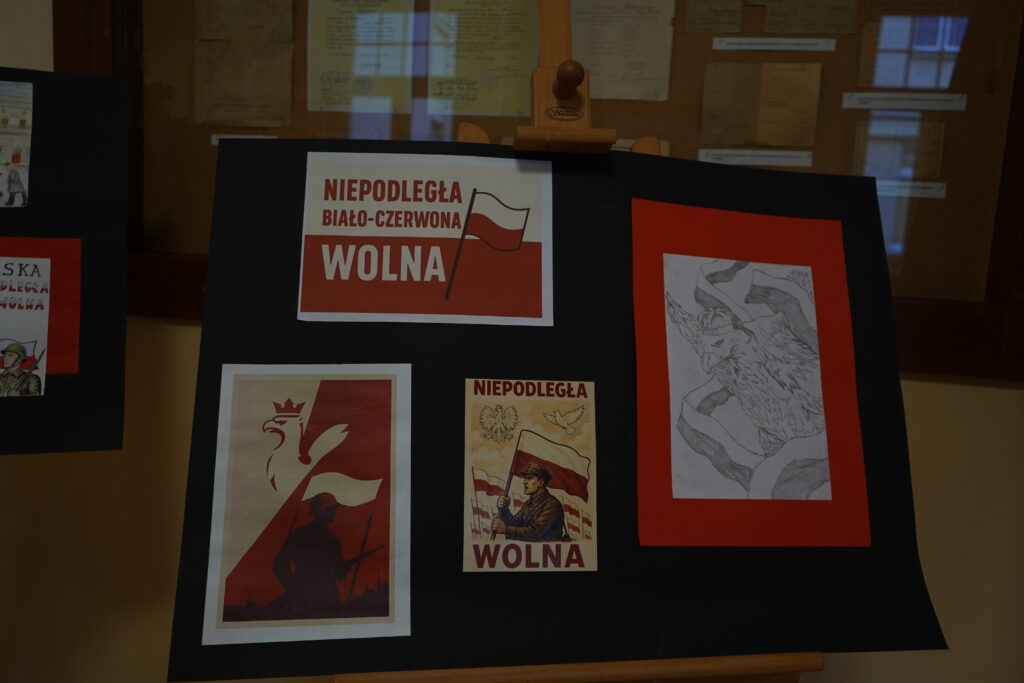 Uroczystość uświetniła wystawa plakatów o tematyce niepodległościowej oraz występ taneczny z flagami w barwach narodowych, będący pięknym wyrazem patriotyzmu i radości z obchodzonego święta.