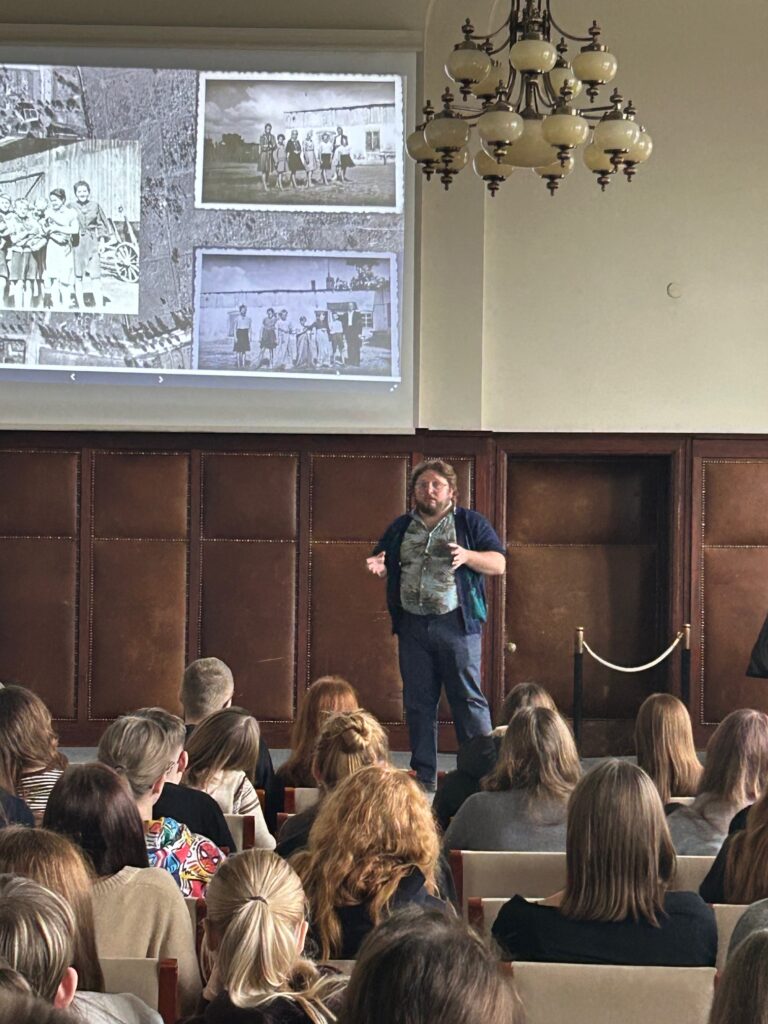 Uczniowie klas humanistycznych mieli okazję uczestniczyć w prelekcji dra Michała Adamiaka z Muzeum Dzieci Polskich w Łodzi na temat tragicznych losów dzieci pochodzących głównie z rejonu Wielkopolski w obozie resocjalizacyjnym, działającym w Łodzi od 1942 roku w granicach getta.