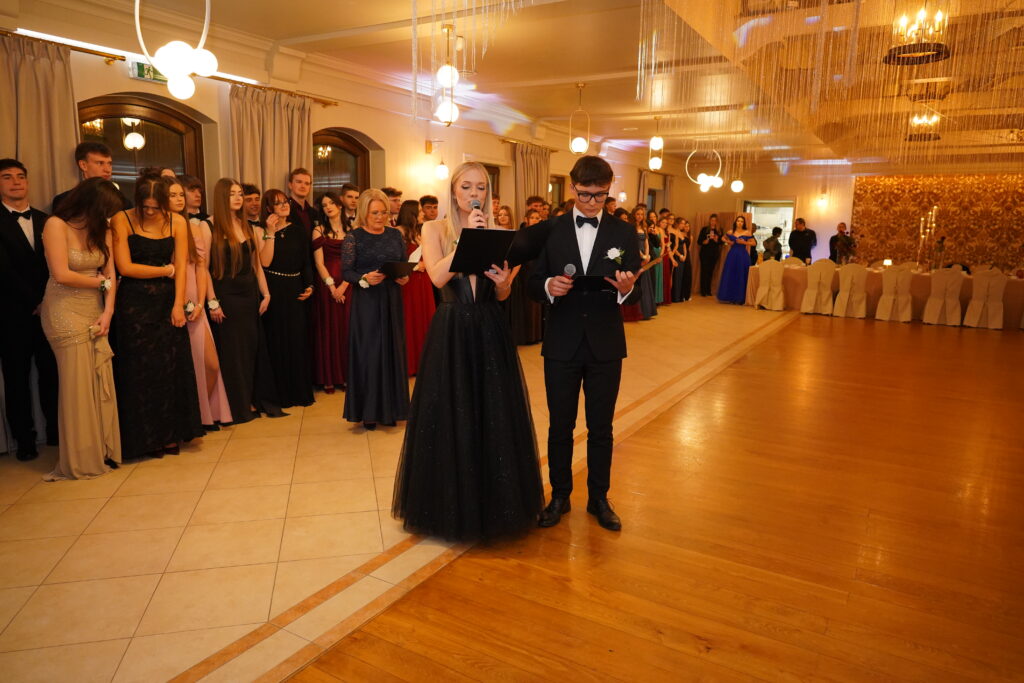 W sobotę, 24 stycznia o godz. 19:00 w Pałacu na Opieszynie rozpoczął się bal studniówkowy naszego Liceum. Wieczór rozpoczął się tradycyjnym i dostojnym polonezem. W blasku świateł, z ogromną gracją i elegancją zaprezentowało się osiem tegorocznych klas maturalnych. W części oficjalnej zabrały głos pani dyrektor Violetta Zdunowska oraz przewodnicząca rady rodziców pani Anna Długosz, które skierowały wiele ciepłych i motywujących słów do wszystkich uczestników balu. Nie zabrakło również wzruszających podziękowań młodzieży dla nauczycieli i rodziców. Wieczór urozmaicony został przez pełną emocji i humoru galę Sienie 2026, od wielu lat towarzyszącą naszym studniówkom, podczas której uczniowie przyznają swoje wyróżnienia nauczycielom. W tym roku kategorie inspirowane były utworami Henryka Sienkiewicza, patrona naszej szkoły. Uczestnicy balu przy dźwiękach tanecznej muzyki bawili się do przysłowiowego białego rana. Studniówka, która odbyła się dokładnie 100 dni przed maturą, jest symbolicznym początkiem odliczania czasu do matury i na pewno pozostanie w pięknych wspomnieniach jej uczestników na długi czas.